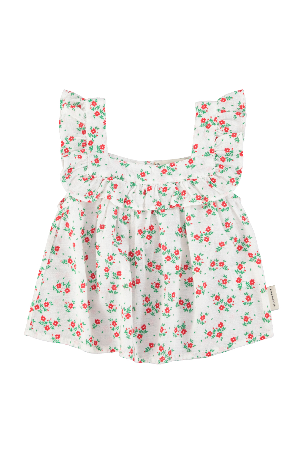 sleeveless blouse | ecru w/ red flowers allover