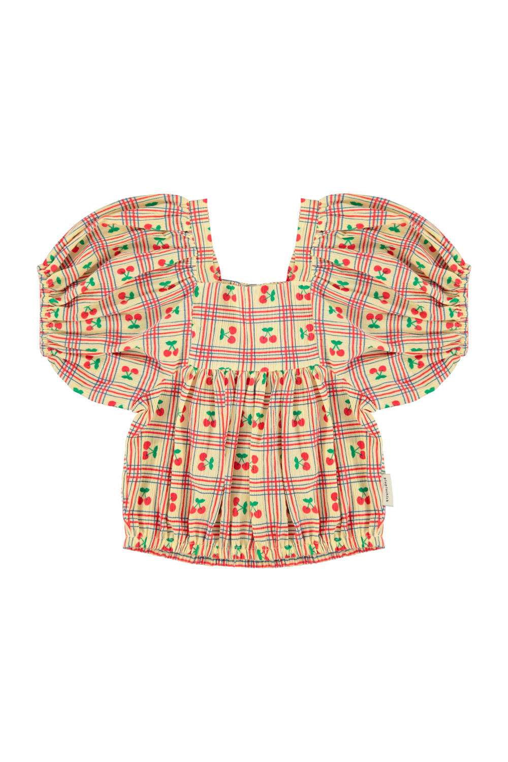 cropped blouse w/ baloon sleeves | light yellow w/ cherries allover